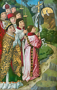 Ao chegar à gruta, depararam-se com a efígie de São Miguel impressa na parede e, ao penetrar no seu interior, encontraram um altar escavado na rocha e ornado com uma cruz de cristal, como símbolo da prometida consagração.